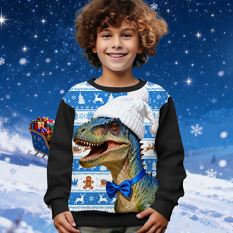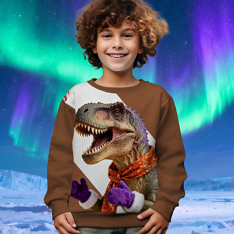 Christmas Boys' 3D Dinosaur Sweatshirt Long Sleeve Spring Fall Fashion Basic Kids 4-12 Years Crew Neck Outdoor Casual Daily Regular Fit