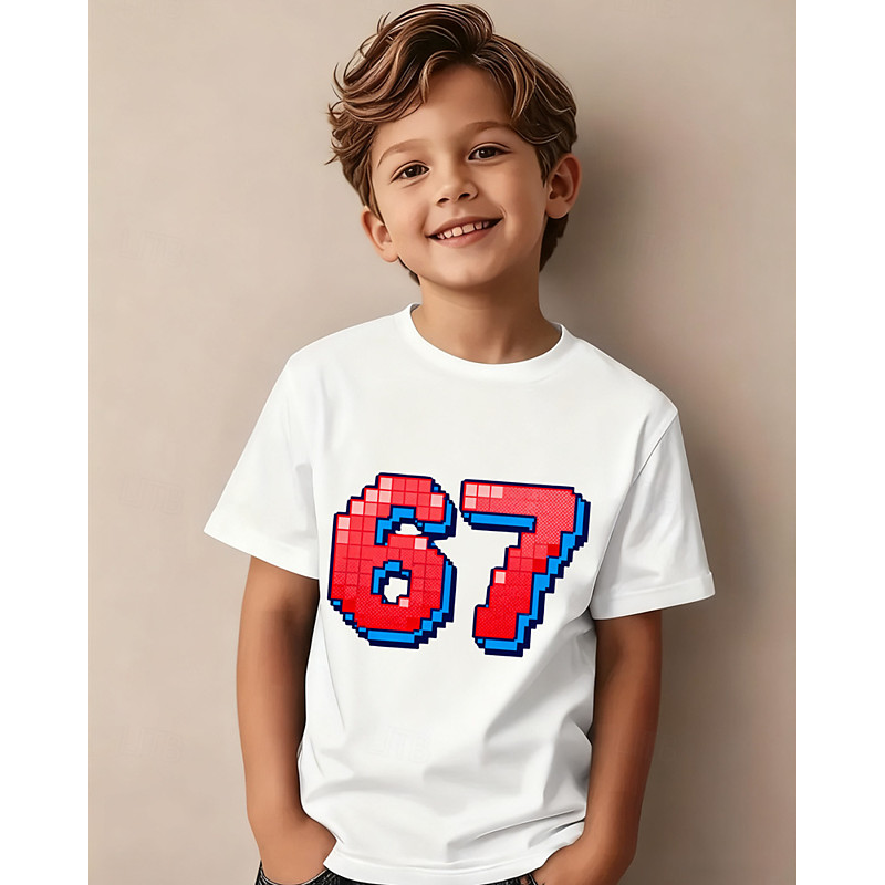 Cotton Kids Boys' Black White Graphic Funny Slang 67 T shirt Blouse Crew Neck Short Sleeve Outdoor Dailywear Fashion Streetwear Designer Summer
