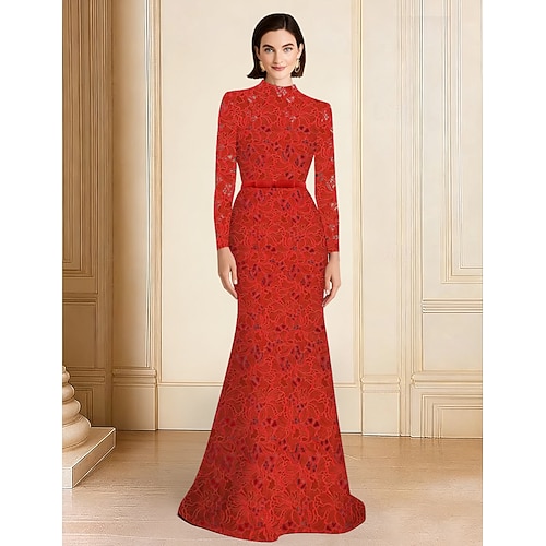 Sirena Tromba Lunghezza al pavimento Abiti da Ballo Abito da Sera Da principessa Abito formale Elegante Scintillante Stile Celebrità Manica Lunga Collo Alto Festa in giardino Matrimonio Pizzo Velluto