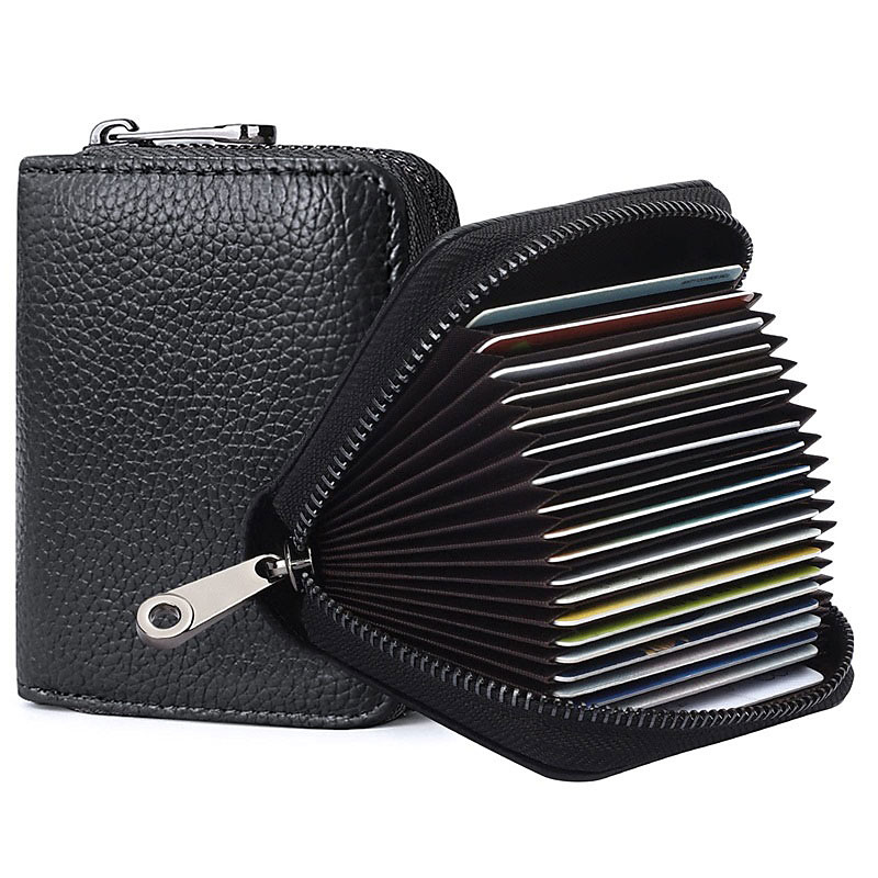 RFID 20 Card Slots Credit Card Holder Genuine Leather Small Card Case for Women or Men Accordion Wallet with Zipper