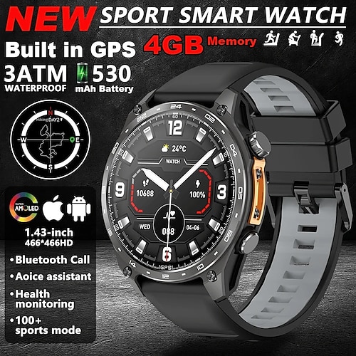Smart Watch 2025 Nuovo per smartwatch sportivo GPS integrato 1.45'' schermo IPS bussola chiamata Bluetooth 1ATM impermeabile SmartBracele regalo di San Valentino