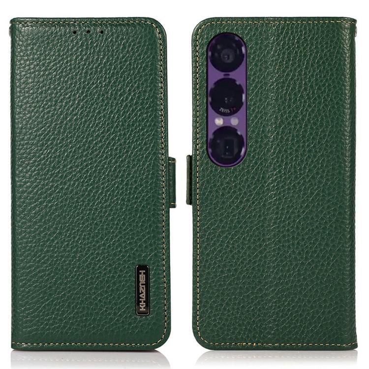 KHAZNEH Sony Xperia 1 VII Plånboksfodral RFID Äkta läder - Grön