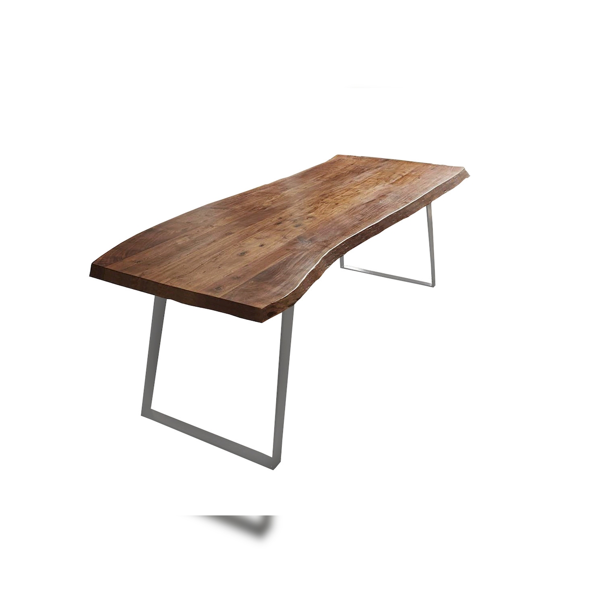 SAM® Esstisch Baumkante Akazie nussbaum 180 x 90 schräges U-Gestell silber HALMSTAD