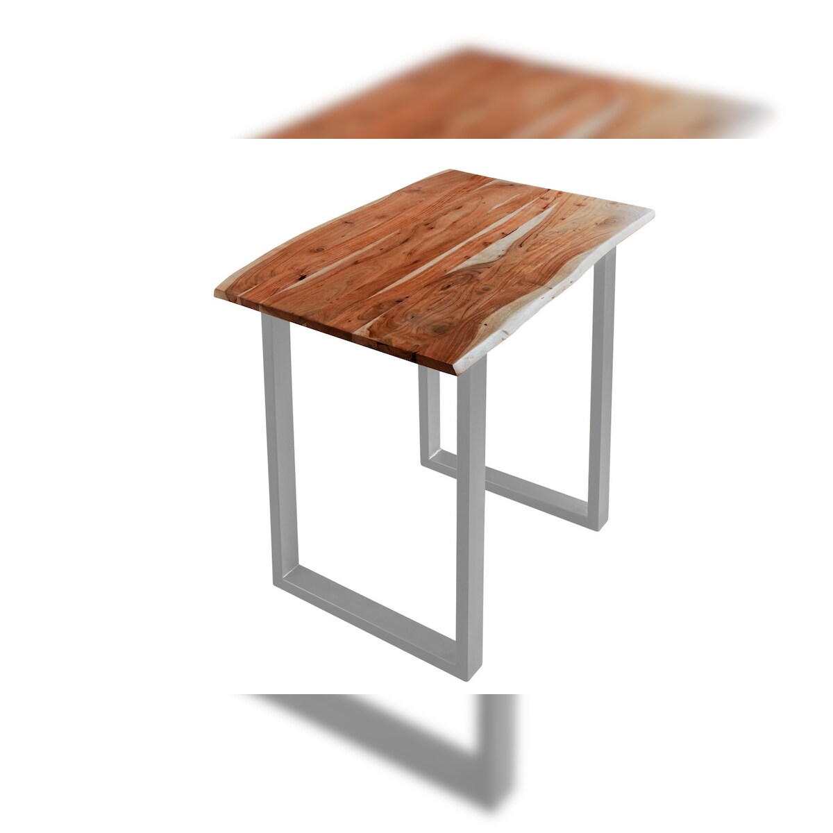 SAM® Bartisch Baumkante massiv Akazie nussbaum 90 x 90 silber Quebec
