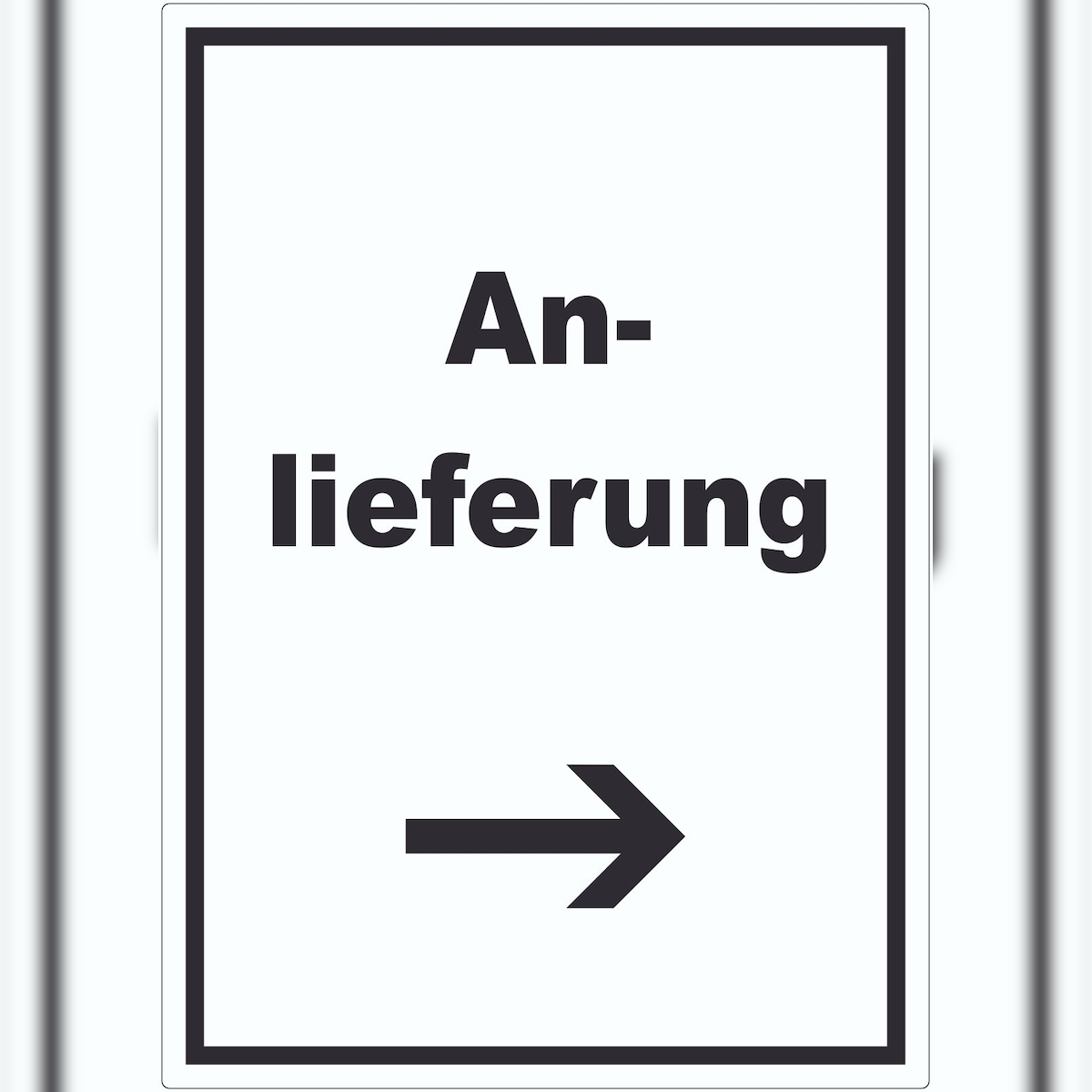 HB-Druck Anlieferung Aufkleber mit Text und Richtungspfeil rechts Annahme hochkant A5 (148x210mm)