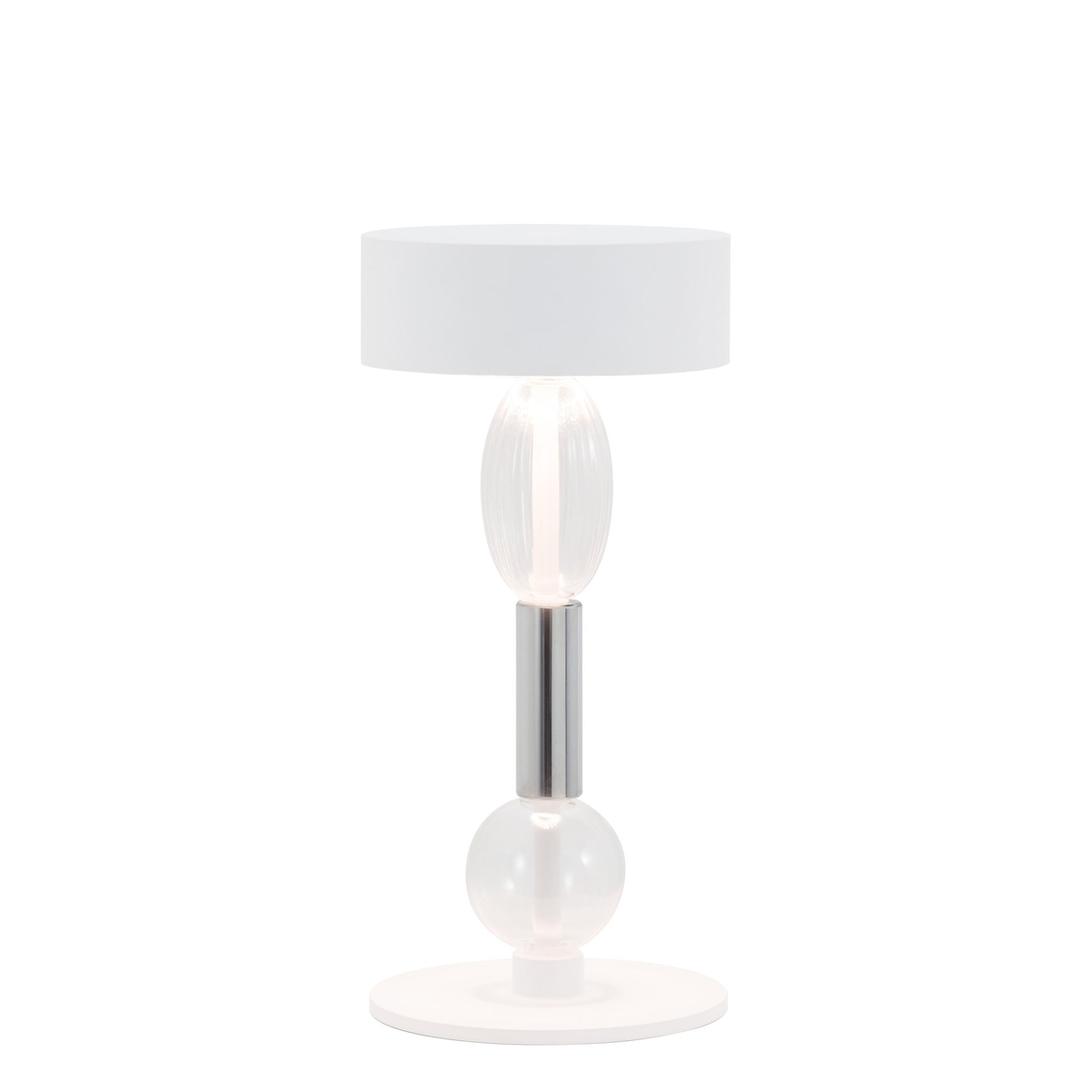 Zafferano Royal Family Wi-Fi - Wiederaufladbare LED-Tischlampe, Touch-Dimmer, 36h Akku, Weiß-Alu, Glas