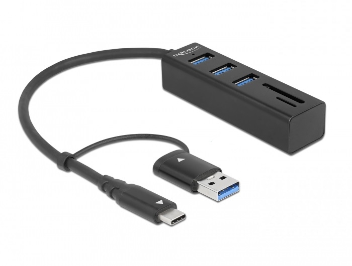 Delock 3 Port USB 3.2 Gen 1 Hub+ SD und Micro Card Reader mit Type-C oder