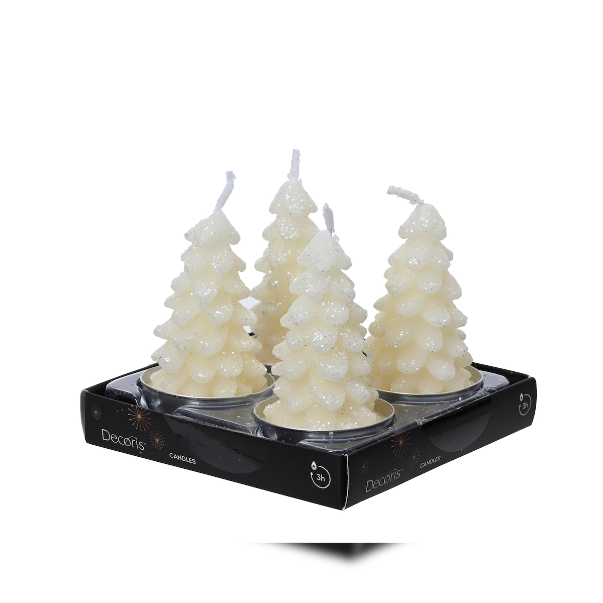 4 Teelichter Kerzen Paraffin 7cm Tannenbaum Form Tischkerzen Adventskerzen Dekokerzen Teelicht Weihnachten Tischdeko Weihnachtsdeko Wollweiß