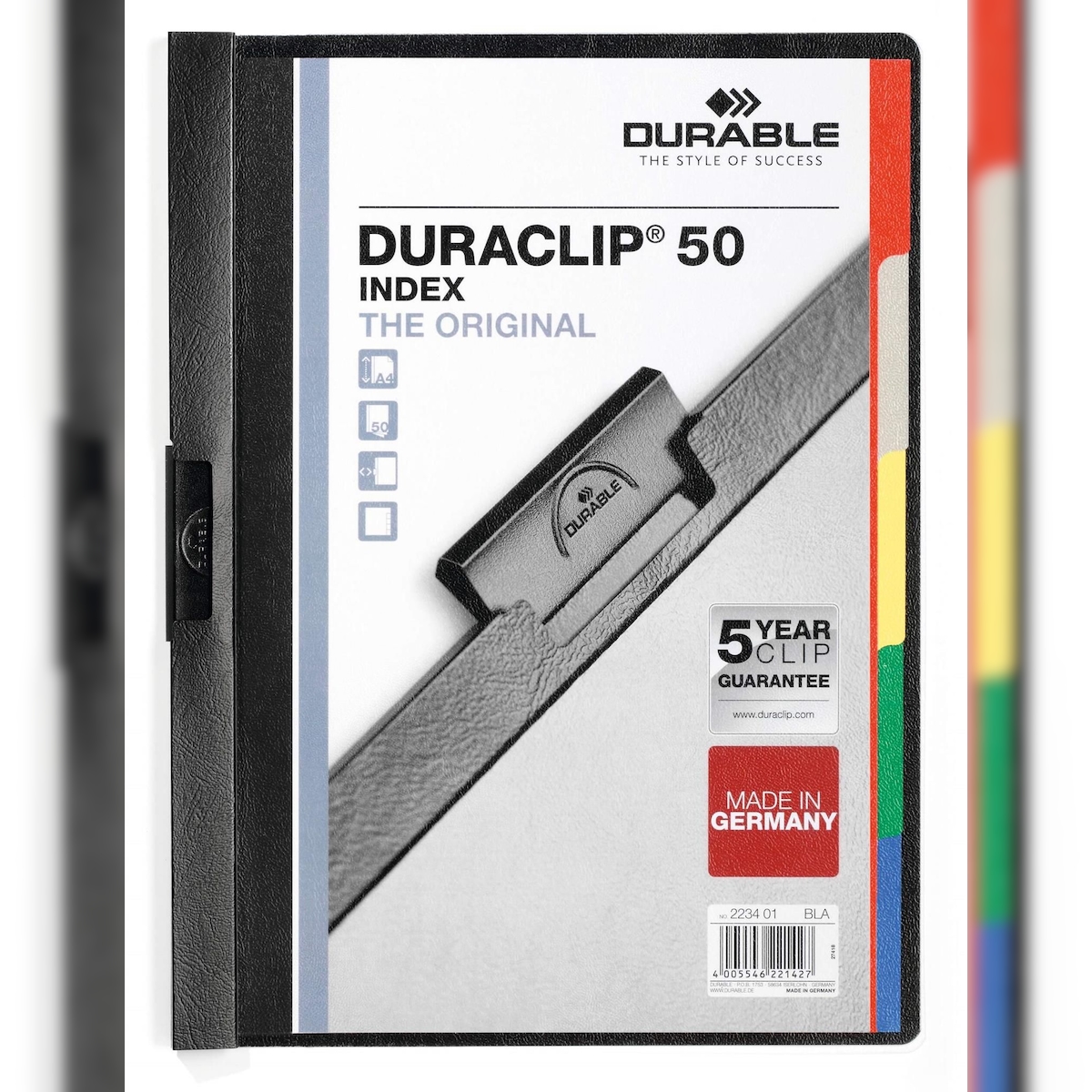 Durable Klemm-Mappe DURACLIP Index sw A4 für 50Blatt m Reg tr Deckbl