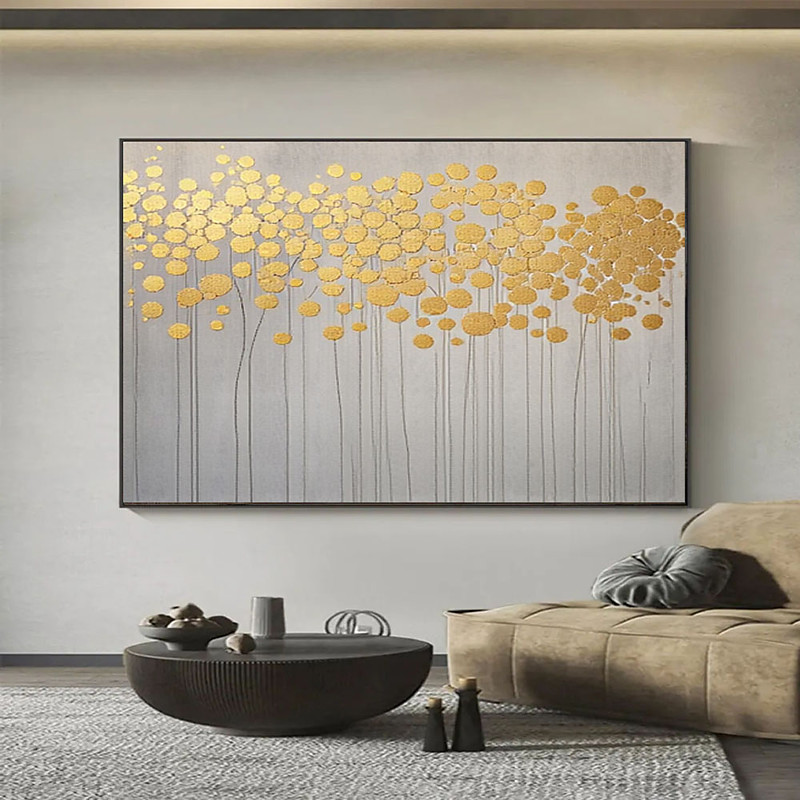 Minimalist Golden Tree Oil Painting on Canvas Large Wall Art Original Abstract Art Custom Painting Gold Wall Decor Living Room Home Decor