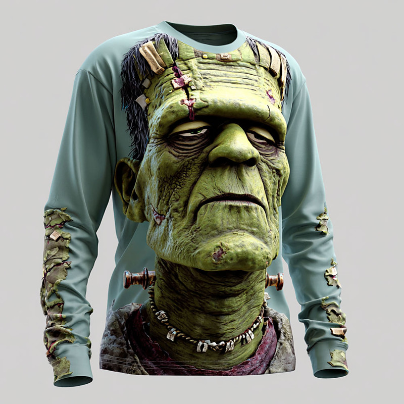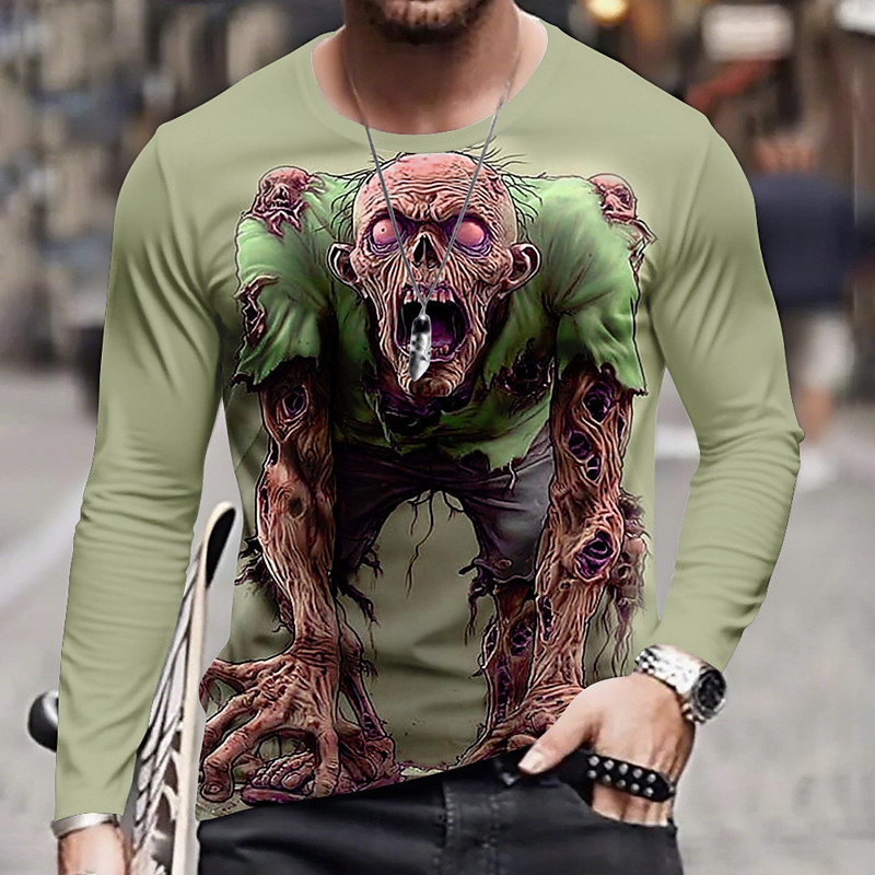 Halloween Men's Zombies 3D T Shirt Long Sleeve T shirt 3D Print Crew Neck Shirt Fashion Exaggerated Street Casual Daily Green 1# Green 2# Green 3# Summer Spring Fall Clothing Apparel S M L XL XXL XXXL