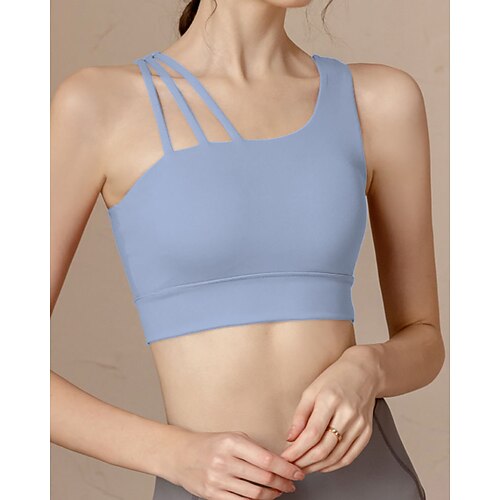 Damen Einfarbig Sport-BH-Oberteil Sport Top Sport-BH Ärmellos Racerback Stoßdämpfung Stoßfest Atmungsaktiv Laufen Fitness Yoga Rundausschnitt Tank-Rückseite Oberteil Schwarz Pink Himmelblau