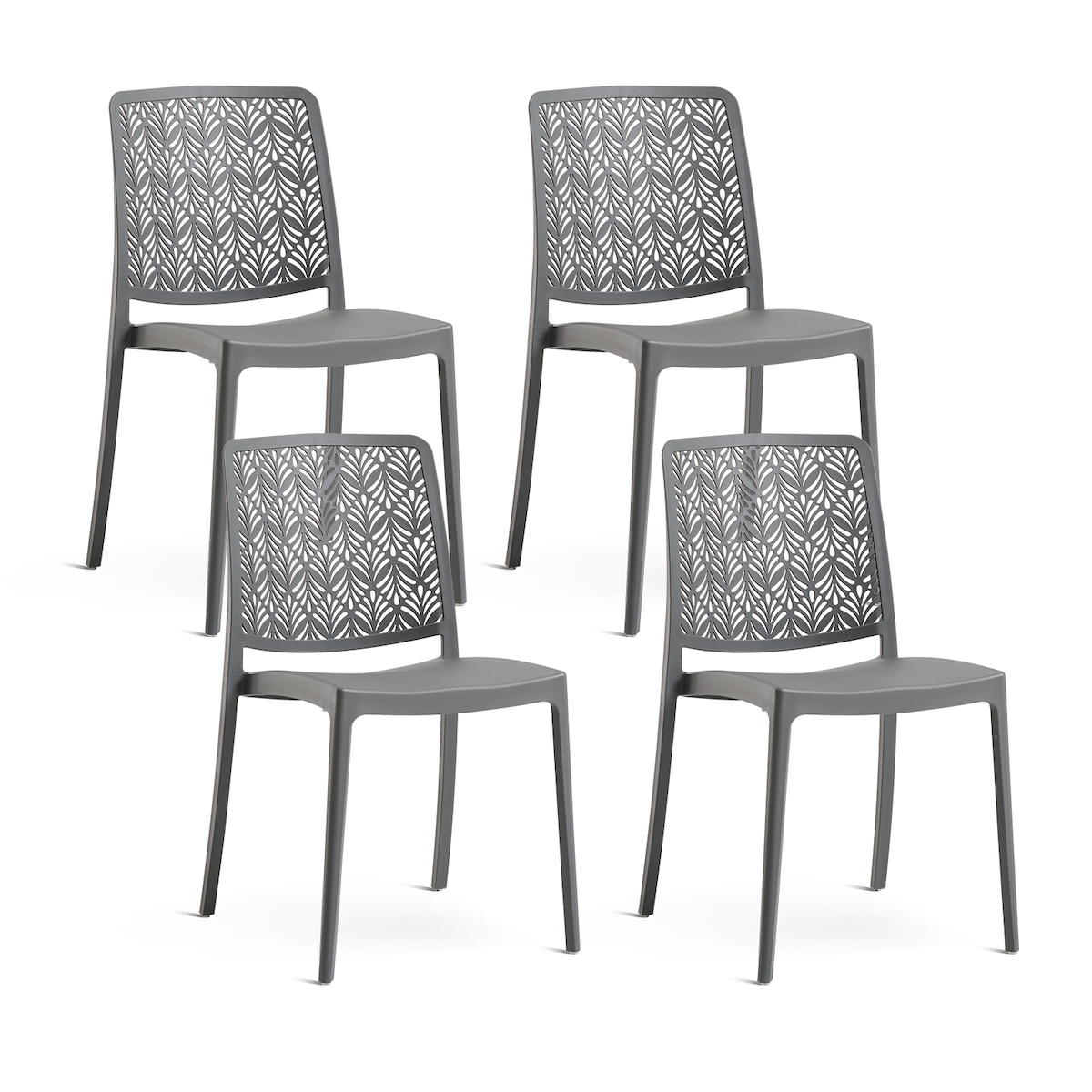 RATTATAN 4er-Set stapelbare Stühle aus Polypropylen mit Glasfasern für Garten oder Innenbereich, wasserabweisend und widerstandsfähig, YARA - Dunkelgrau