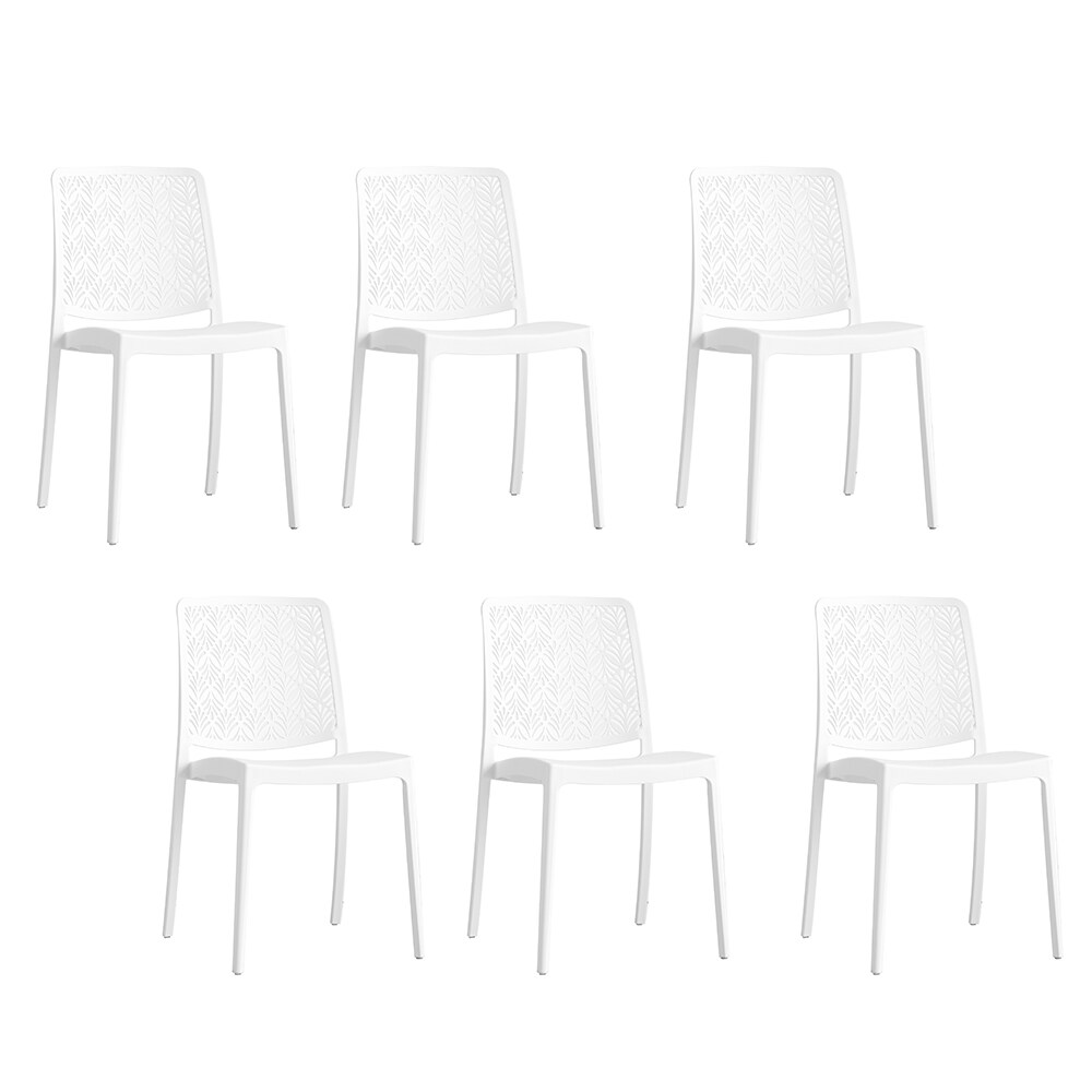 RATTATAN 6er-Set stapelbare Stühle aus Polypropylen mit Glasfasern für Garten oder Innenbereich, wasserabweisend und widerstandsfähig, modernes - YARA - Weiß