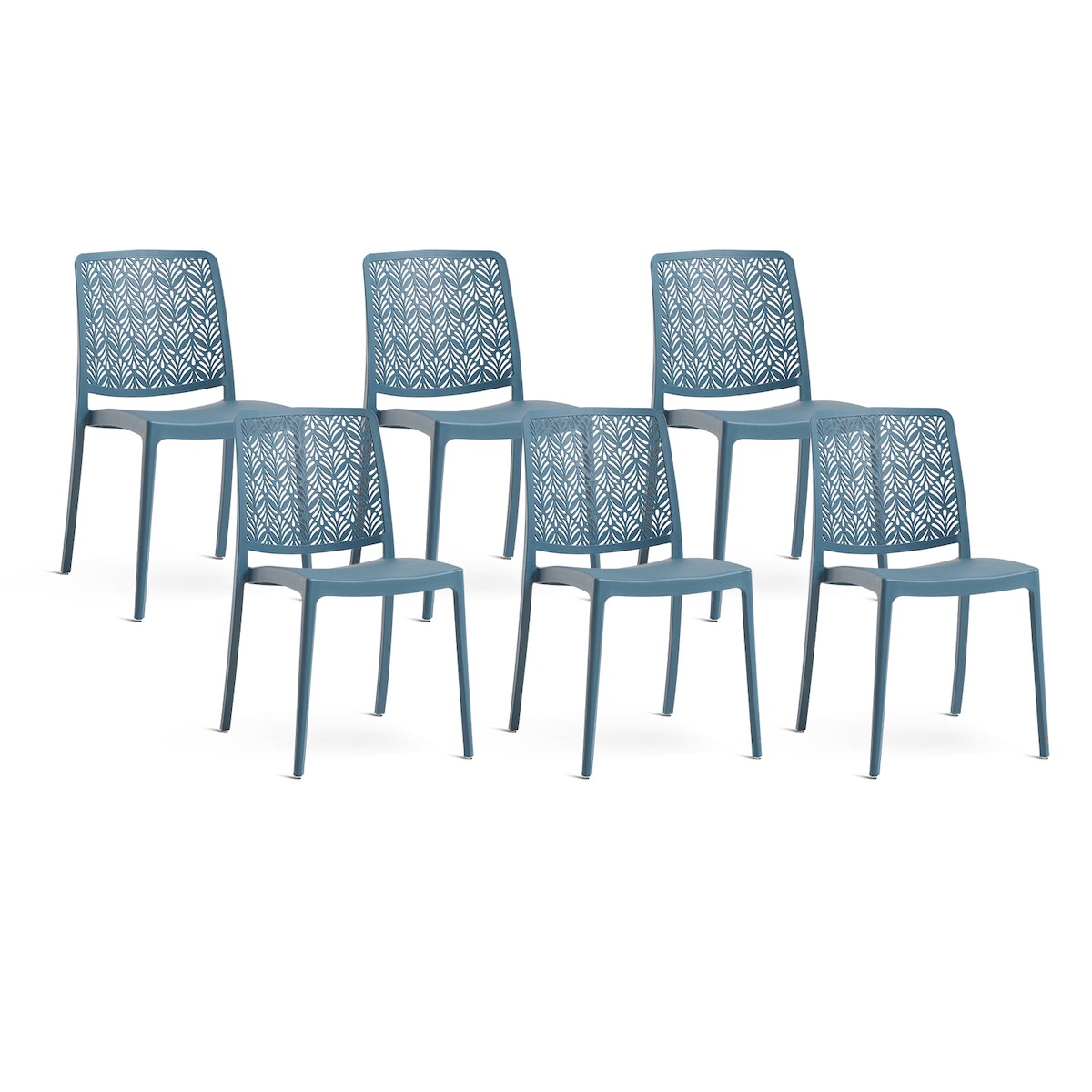 RATTATAN 6er-Set stapelbare Stühle aus Polypropylen mit Glasfasern für Garten oder Innenbereich, wasserabweisend und widerstandsfähig - YARA - Petrol