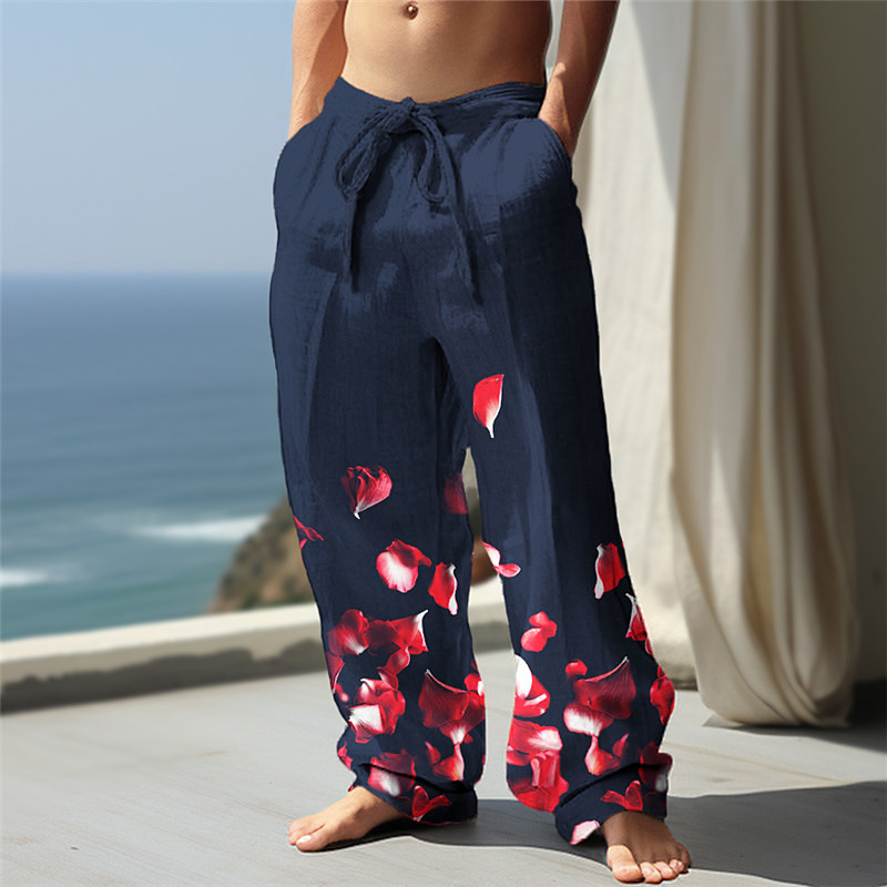 Valentine's Day Floral Men's Romantic 3D Printed Casual Pants Trousers Elastic Waist Drawstring Loose Fit Straight-Leg Summer Beach Pants S TO 3XL