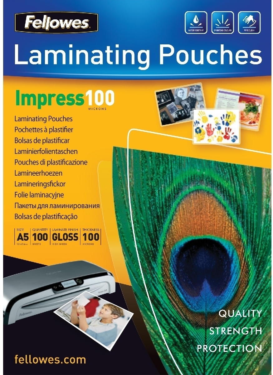 Fellowes Laminierfolie A5 100mic VE=5x100 Stück glänzend