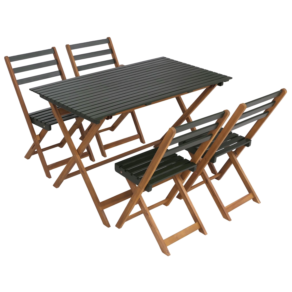 Mendler Garnitur HWC-P72, Sitzgruppe Gartenmöbel-Set Essgruppe 4x Stuhl Tisch, Akazie Holz klappbar ~ natur-grün