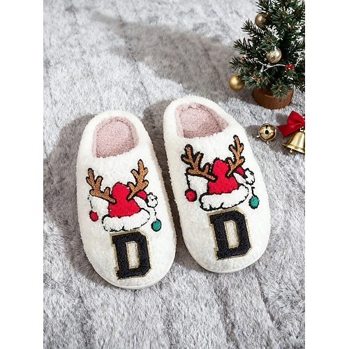 comode pantofole natalizie da donna con design a renna: morbide pantofole con 26 lettere tra cui scegliere, a tema natalizio, perfette per rilassarsi e come regalo