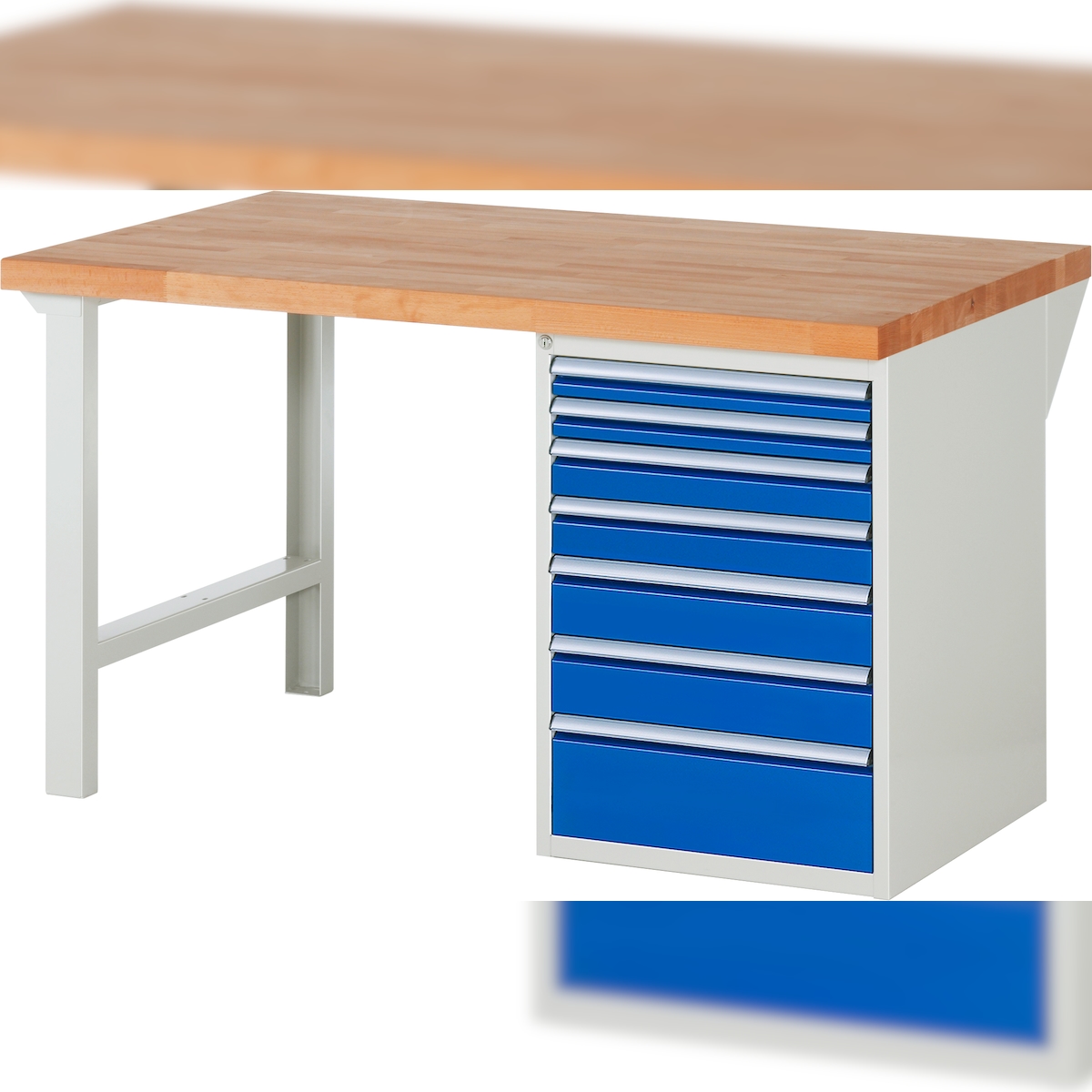 Werkbank, Baukastensystem Serie 7000, 4 Schubladen, 2 Türen, BxT 1500 x 900 mm eurokraft pro