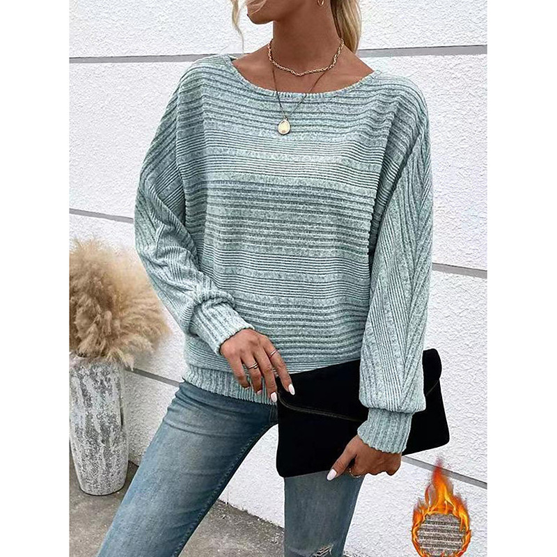 Women's Sweater Casual Soft Striped Ribbed Crew Neck Knitted Long Sleeve Regular Tops Knit Outdoor Daily Weekend Black White Fall Winter