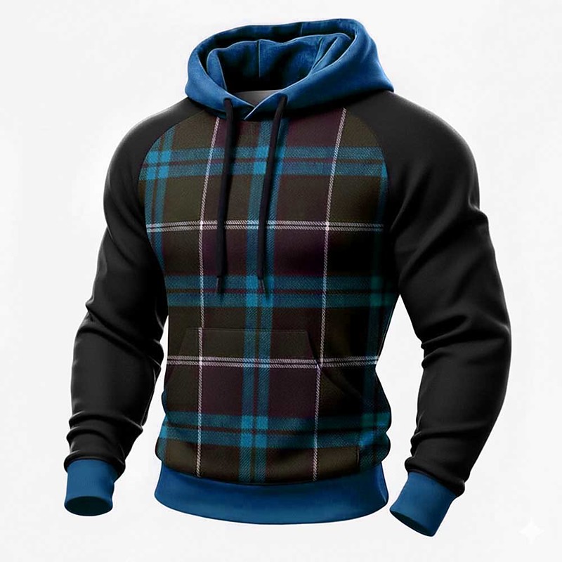 Men's Geometric Plaid Hoodie Sweatshirt Fashion Daily Crew Neck Home Streetwear Party Blue Brown Green Drawstring Fall Winter Designer S M L XL XXL XXL
