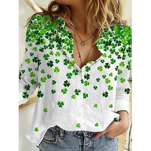 Festa di San Patrizio Per donna Blusa Grafico Trifoglio Vintage Elegante Casual Manica Lunga Colletto a Camicia Top Regolari Quotidiano Lavoro Bottoni Stampato Bianco Verde Primavera Inverno