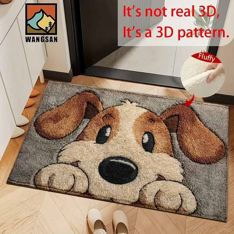 Cartoon Faux Shearling Doormat Durable Entryway Floor Mat 2D Flat Print Quick Dry Absorbent Bathroom Rug Easy Care Non Slip Home Decor
