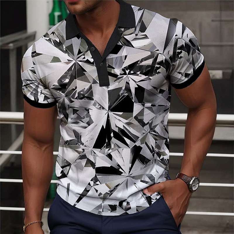 Men's Geometric Hawaiian Polo Shirts Golf Shirt Short Sleeve Polo Shirts Collared Shirts Casual Beach Wear Vacation Wear Party Outfits 3D Print Quarter Zip Polo White gray Black Light Green