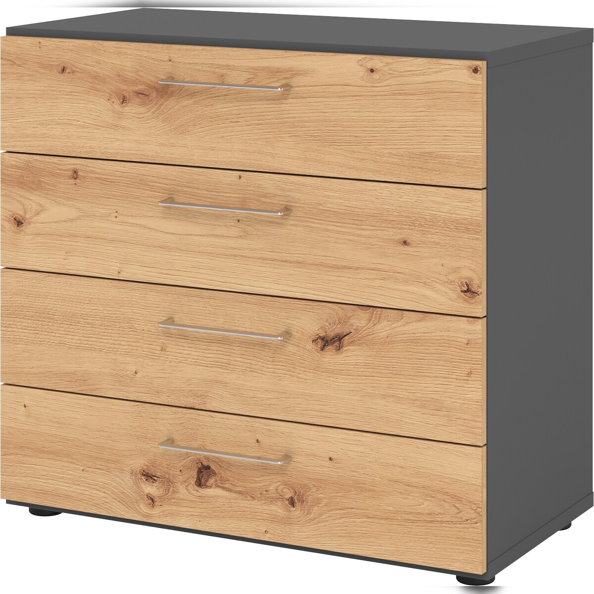 bümö smart Schubladenschrank, Büroschrank 80cm breit in Graphit/Asteiche mit 4 Schüben - Bürocontainer aus Holz, Container mit Metallgriffen &