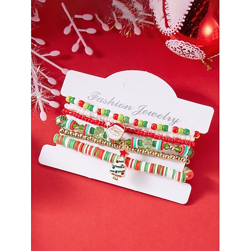 braccialetti natalizi con perline da donna, in lega e acrilico, nei colori festivi rosso, verde e bianco, gioielli natalizi con fiocchi di neve, ciondoli a forma di Babbo Natale e albero di Natale