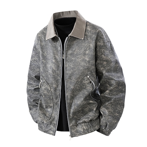 Per uomo Giacca in Ecopelle Giacca da Moto All'aperto Casuale Giacca a Vento Stile Moderno Autunno Inverno Tinta unica Punk Attivo Regolare Marrone Grigio chiaro Grigio scuro Giacca
