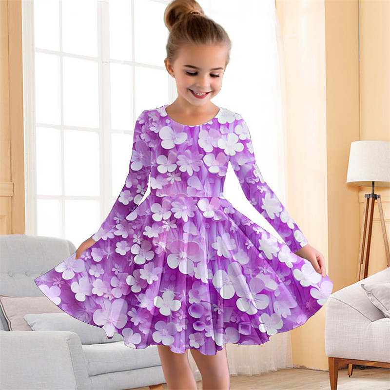 Easter Girls' 3D Floral Dress Long Sleeve 3D Print Fall Winter Vacation Sports Outdoor Daily Cute Casual Beautiful Kids 3-12 Years Casual Dress A Line Dress Above Knee Regular Fit