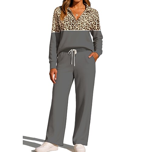 Per donna Maglia Tuta da Ginnastica Pantaloni da Tuta Coulisse Tasca Leopardo Giacca e Pantaloni da Tuta Set di Abbigliamento Sportivo Loungewear Estate Rosso marrone Nero Allenamento in Palestra