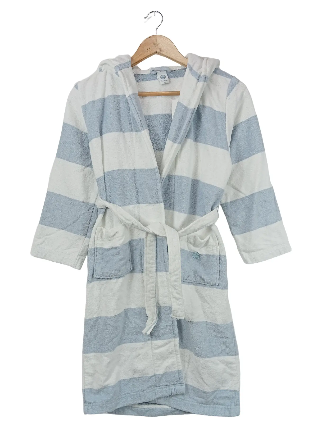 SANETTA Bademantel 140 blau weiß gestreift Kinder Kapuze