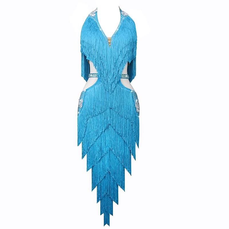 Dance Salsa Latin Dance Dress Fringed Tassel Split Joint Women's Performance Training Sleeveless Chinlon