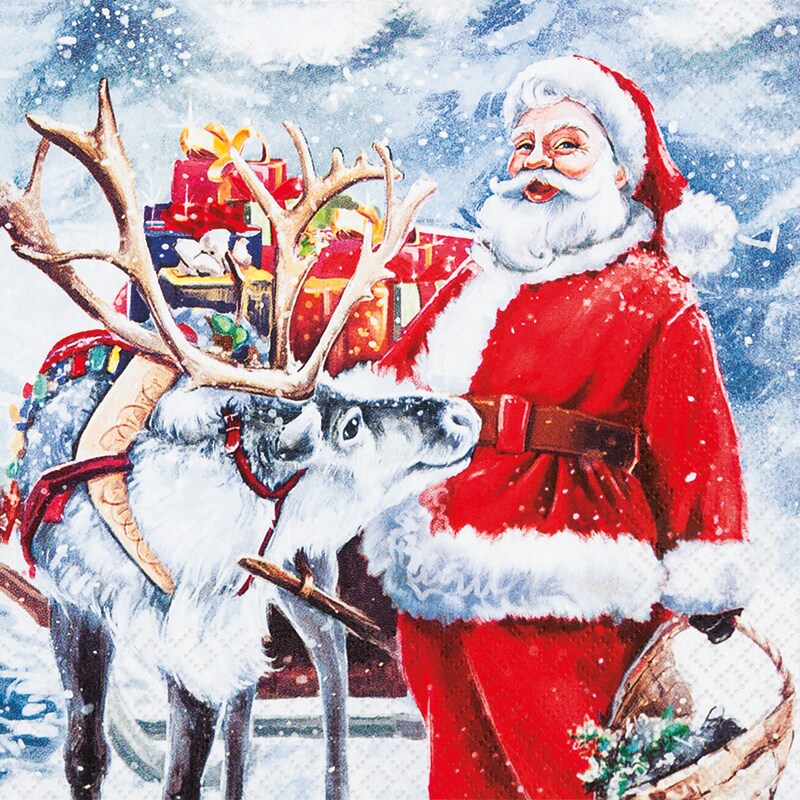 Home Fashion, Santa with Reindeer, Lunch-Servietten aufgefaltetes Maß 33 cm x 33 cm, im Viertelfalz, 20 Stück pro Pack