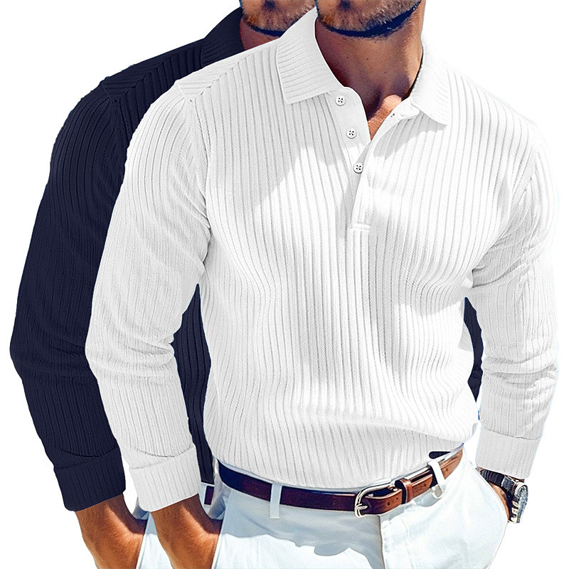 Men's Rib Knit Top Textured Street Casual Lapel Long Sleeve Basic Modern Plain 2 Piece Buttons Spring Fall All Seasons Regular Fit Gray / Navy Gray / White Blue White Blue Gray Blue Navy White