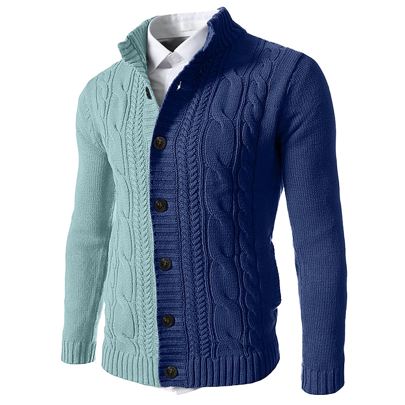 Men's Sweater Cardigan Sweater Cable Knit Regular Tops Button Up Knitted Plain High Neck Vacation Fashion Casual Daily Wear Clothing Apparel Fall Spring Fall Blue Black M L XL