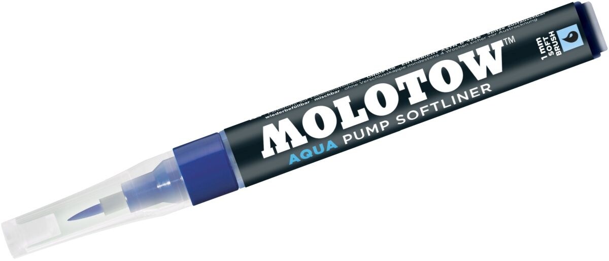 MOLOTOW Pinselmarker Pump Softliner Aqua 1mm primärblau Packung mit 3 Stück