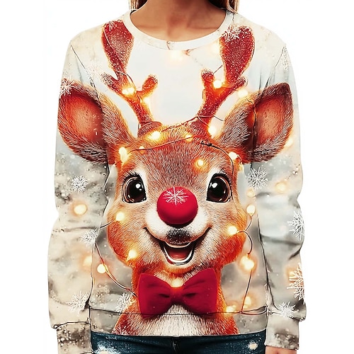 Felpa Pullover da donna con cappuccio grafica animale renna moda casual a maniche lunghe collo rotondo top regolari street quotidiano casual stampa bianco rosa blu primavera autunno inverno