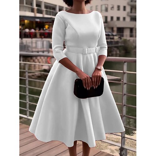 Per donna Abito Midi Abito Bianco Abito da laurea Vestito Casual Elegante Moda Moderno All'aperto Vacanza Feste Vestibilità regolare Semplice Manica Lunga Girocollo Nero Bianco Rosa Rosso Estate