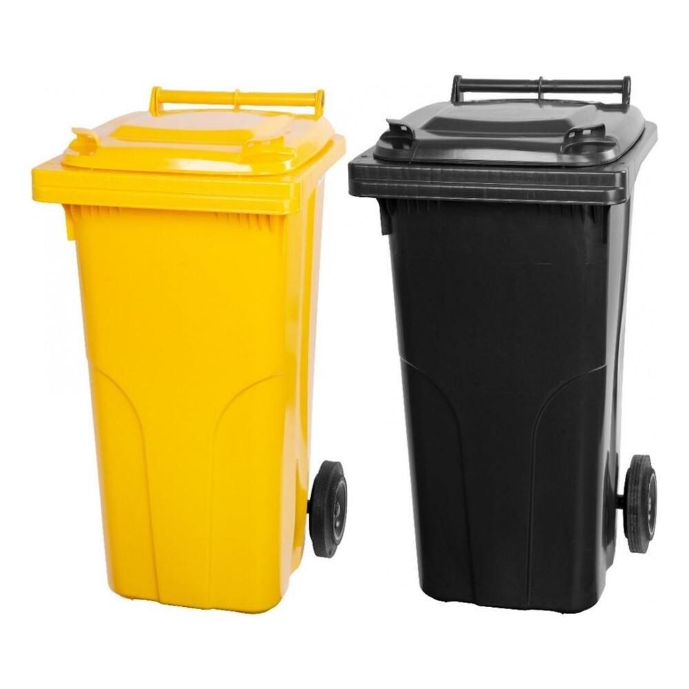 Mega Deal 2x PROREGAL 2-Rad-Mülltonne, 120 Liter, HDPE Kunststoff, Gelb & Grau, Mülltonne, Müllgroßbehälter, Mülleimer, Abfalltonne, Müllbehälter