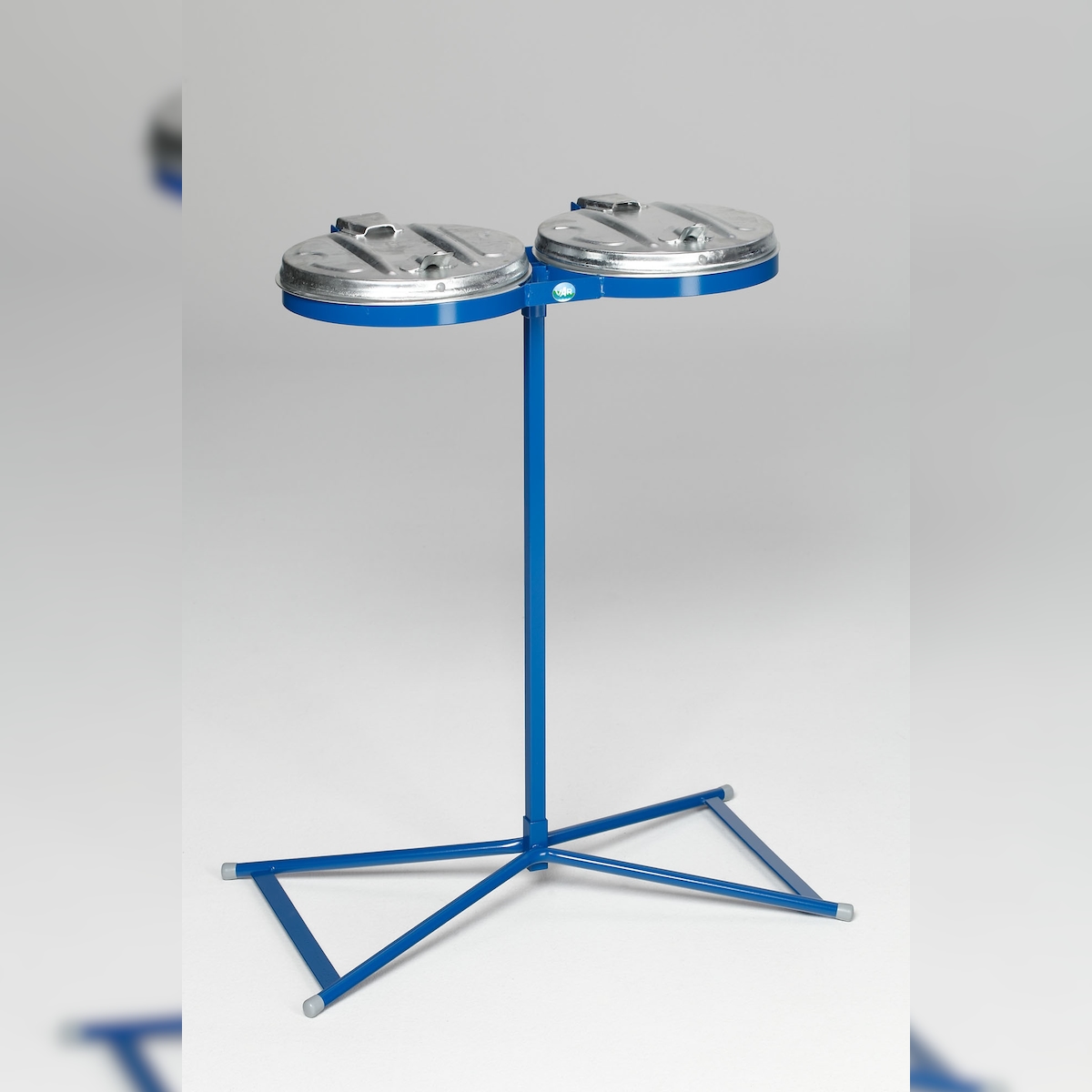 PROREGAL Robuster Doppel-Abfallsammler mit Metall-Deckel | Stationär | 2x 120 Liter, HxBxT 98x85x48cm | Stahl | Blau-Verzinkt | Mülleimer Abfalleimer