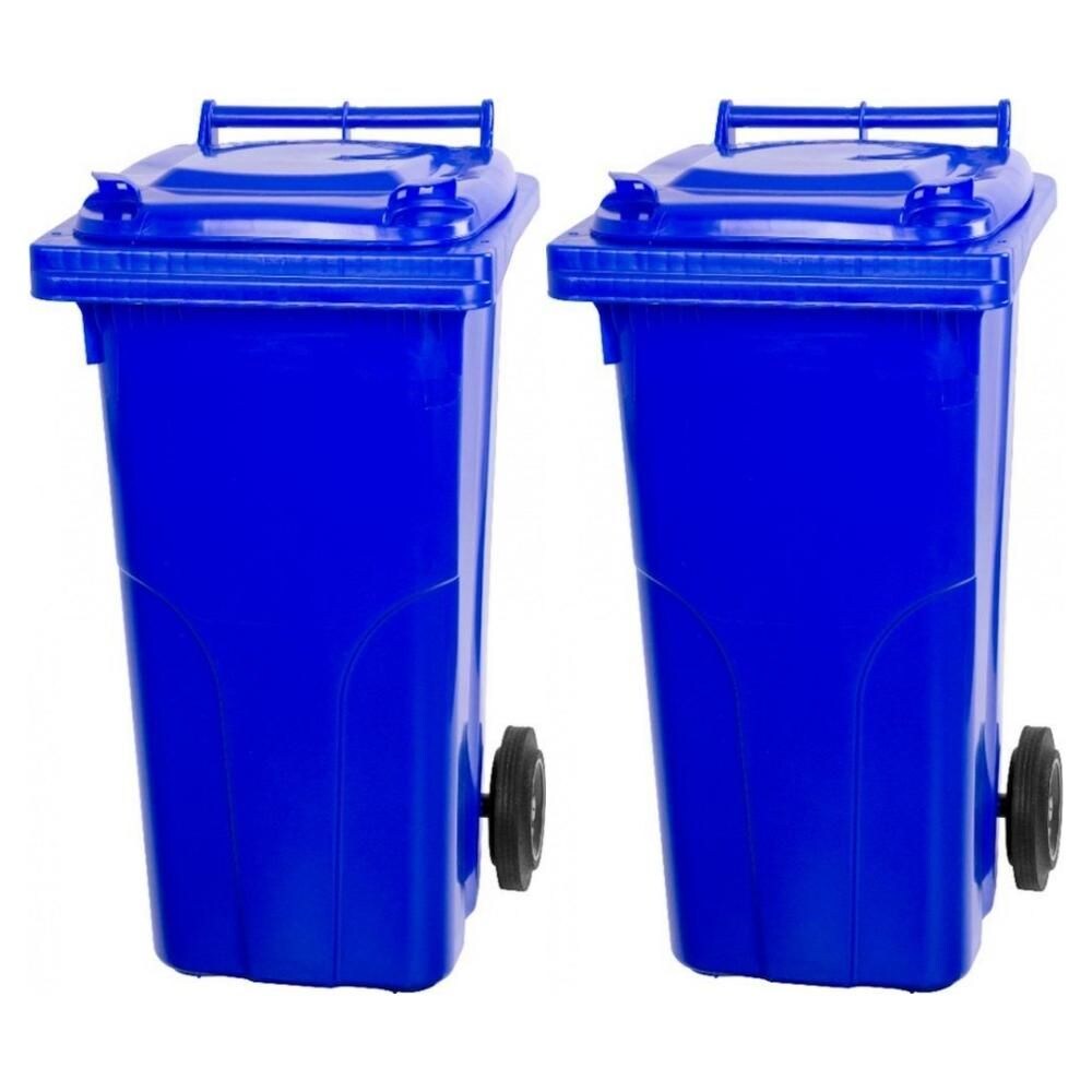 Mega Deal 2x PROREGAL 2-Rad-Mülltonne, 120 Liter, HDPE Kunststoff, Braun & Blau, Mülltonne, Müllgroßbehälter, Mülleimer, Abfalltonne, Müllbehälter