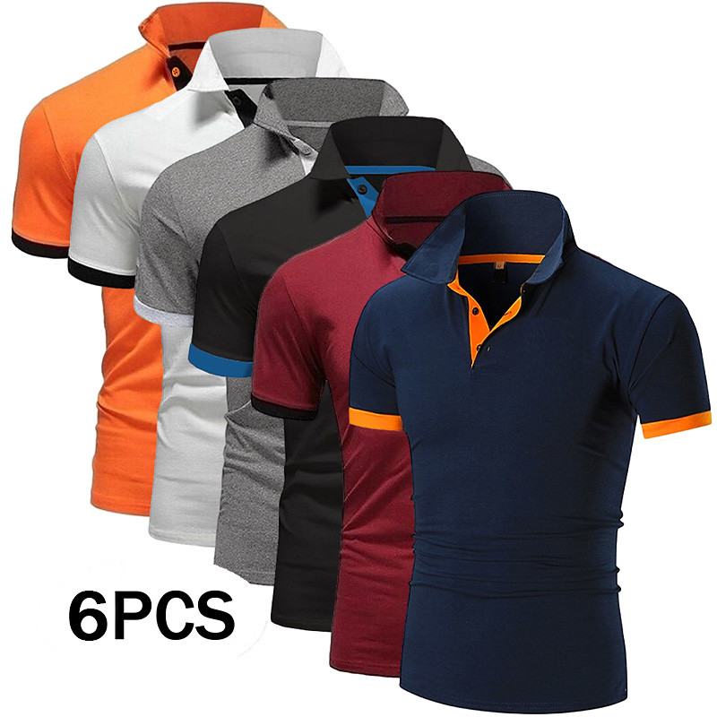 6PCS Men's Polo Golf Shirt Casual Sports Classic Short Sleeve Basic Solid Color Plain 6-Piece Multi-pack Summer Spring All Seasons Regular Fit Polo