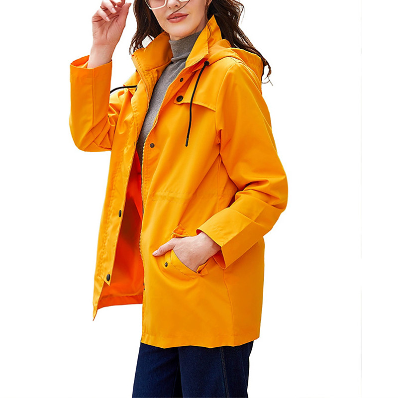 Women's Trench Coat Waterproof Rain Jackets Rain Coats Waterproof Windproof Zipper Pocket Fashion Outdoor Plain Going out Weekend Zipper Regular Hooded Regular Fit Long Sleeve Outerwear Black Yellow