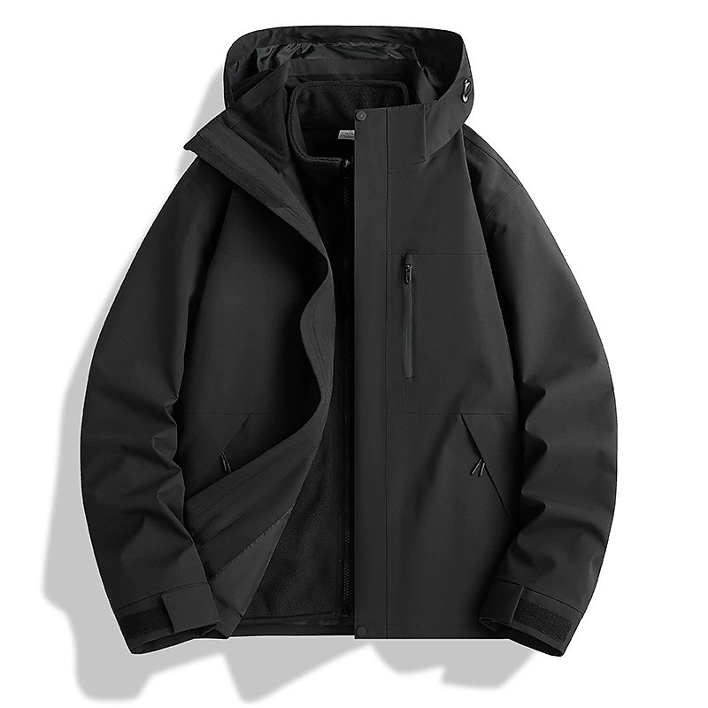 Men's Fleece Rain Jacket Winter Jacket Hiking Jacket Windcheater Jacket Outdoor Sports Outdoor Waterproof Windbreaker Pocket Detachable Hood Fall Winter Solid Color Active Sporty Hooded Short Black