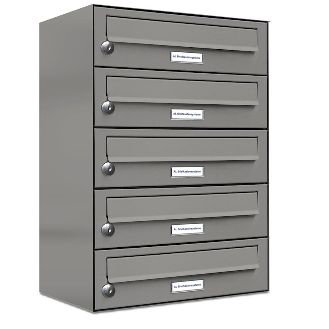 AL Briefkastensysteme 5 Fächer Premium Wand Briefkasten Anlage in RAL 9007 Aluminium Grau, Post A4, robust, wetterfest, Artikelnummer: 132P5EA1P9007