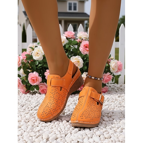 Per donna Sandali Sandali con Zeppa Sandali con Plateau Taglie Forti All'aperto Quotidiano Passeggiata Tinta unita Estate Fibbia Tacco basso Zeppa Peep Toe Classico Casual Pelle PU Finta Pelle Fascia